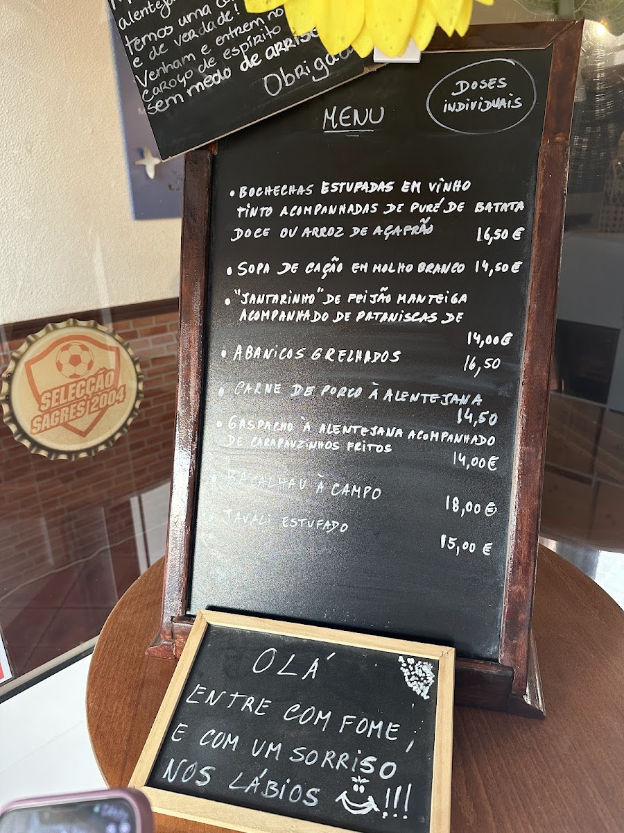 “ There's no other way to say it Fantastic All traditional Alentejo food From starters till desert The main course was a lamb, old school, "ensopado" that was outstanding The place is very regional, the music is the world famous, "cante alentejano" and the "sericaia" was the perfect ending to the meal A must come Bring appetite and friends ”