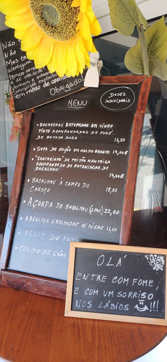 “ What a fantastic place to stop on the way through the heart of Alentejo. Friendly, helpful staff. Delicious local cheese (queijo), ham (presunto), queijunto if you can’t decide, and amazing pigs’ cheeks (bochechas). All on a lovely terrace. Yes yes yes! ”